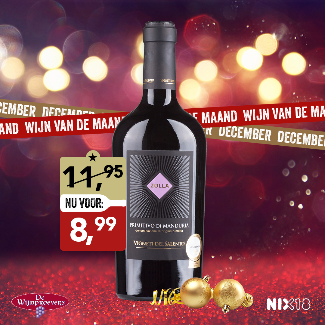 Primitivo di Manduria is de trots van Puglia: een wijn gemaakt van oude wijnstokken, vaak met lage opbrengst maar hoge kwaliteit. De Zolla Primitivo di Manduria is een volle, dieprode wijn met kracht én zachtheid. In de geur herken je rijp donker fruit zoals bramen, pruimen en kersen, aangevuld met tonen van cacao, vanille en een vleugje kruiden.